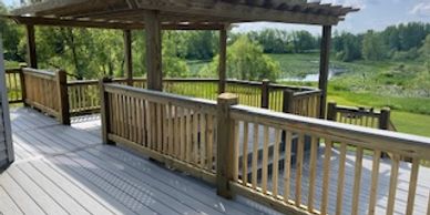 The sun is another thing to consider. Shade is important for comfortable enjoyment of any deck. We can add a purgola, or a roof over or a simple lattice arbor to help with those hot summer days. Let us help you design a comfy place to relax.